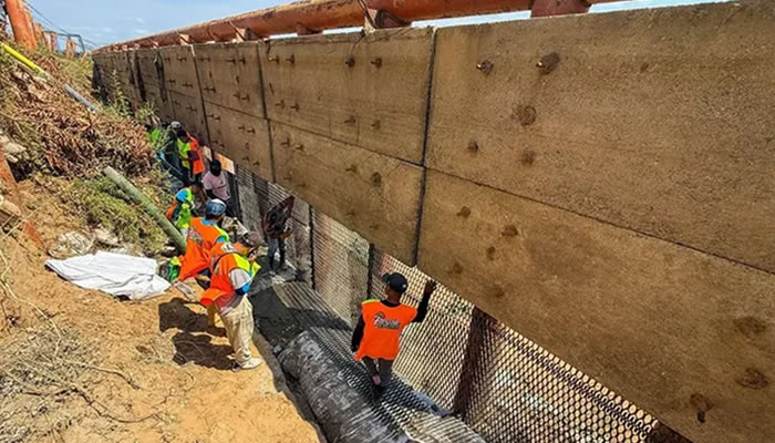 Se han vertido 41 toneladas de bolsacreto para frenar el socavamiento progresivo y fortalecer la estructura de contención