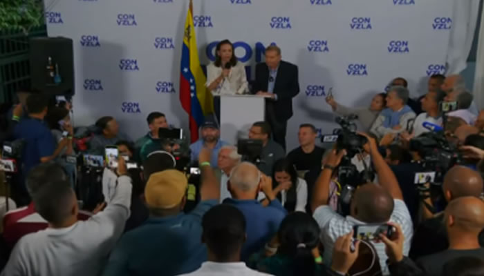 «Tenemos el 73.20% de las actas y con este resultado nuestro presidente electo es Edmundo González Urrutia», expresó.